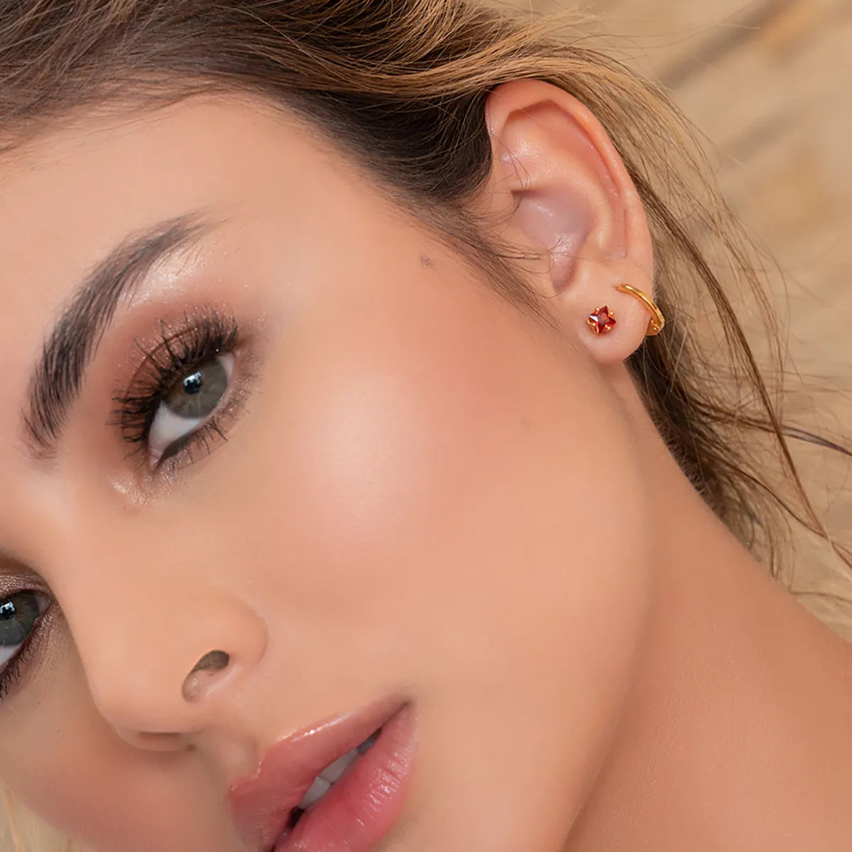 Aretes Topo Circon Cuadrado ROJO