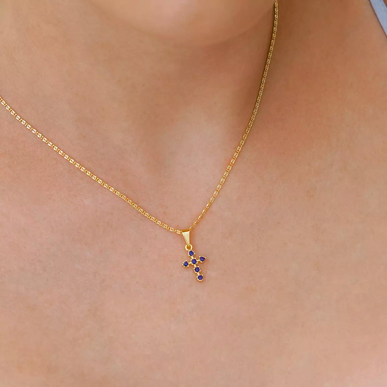 Dije Cruz 6 Circonias Azul